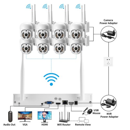 AZISHN H.265 3MP HD Wireless CCTV System Two Way Audio Waterproof PTZ WIFI IP Security Camera 8CH P2P NVR Video Surveillance Kit